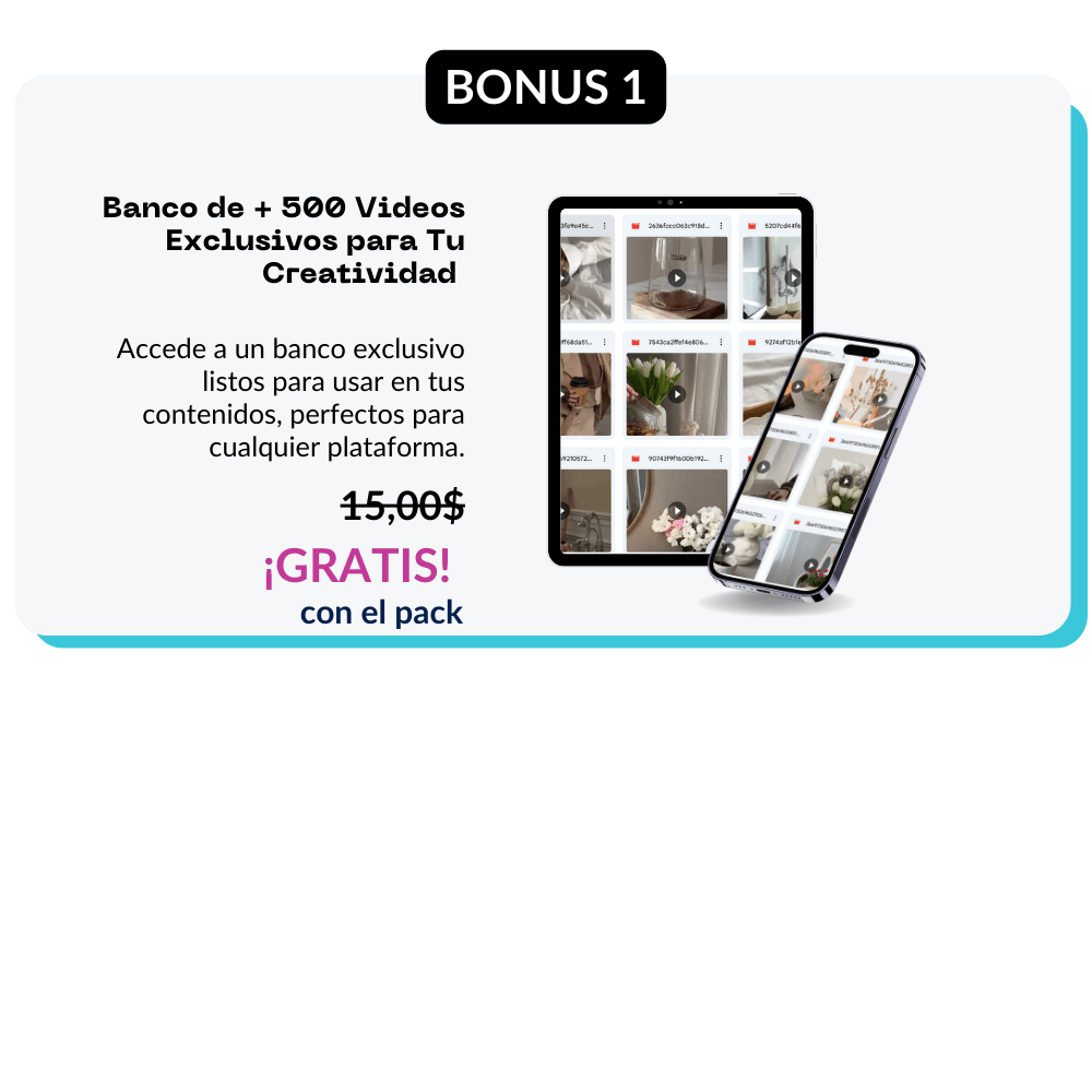 ☑️ Acceso a nuestra bóveda con +500 videos listos para utilizar en tu creación de contenido y en la plataforma que quieras. Valorado en 50$. Gratis con el pack