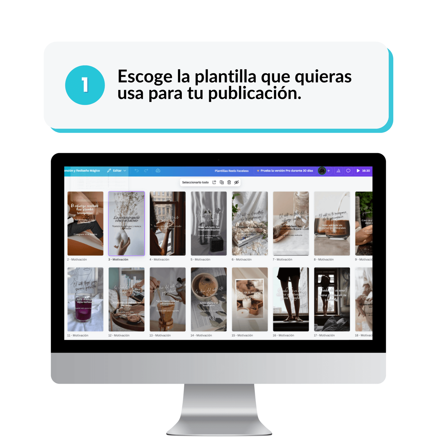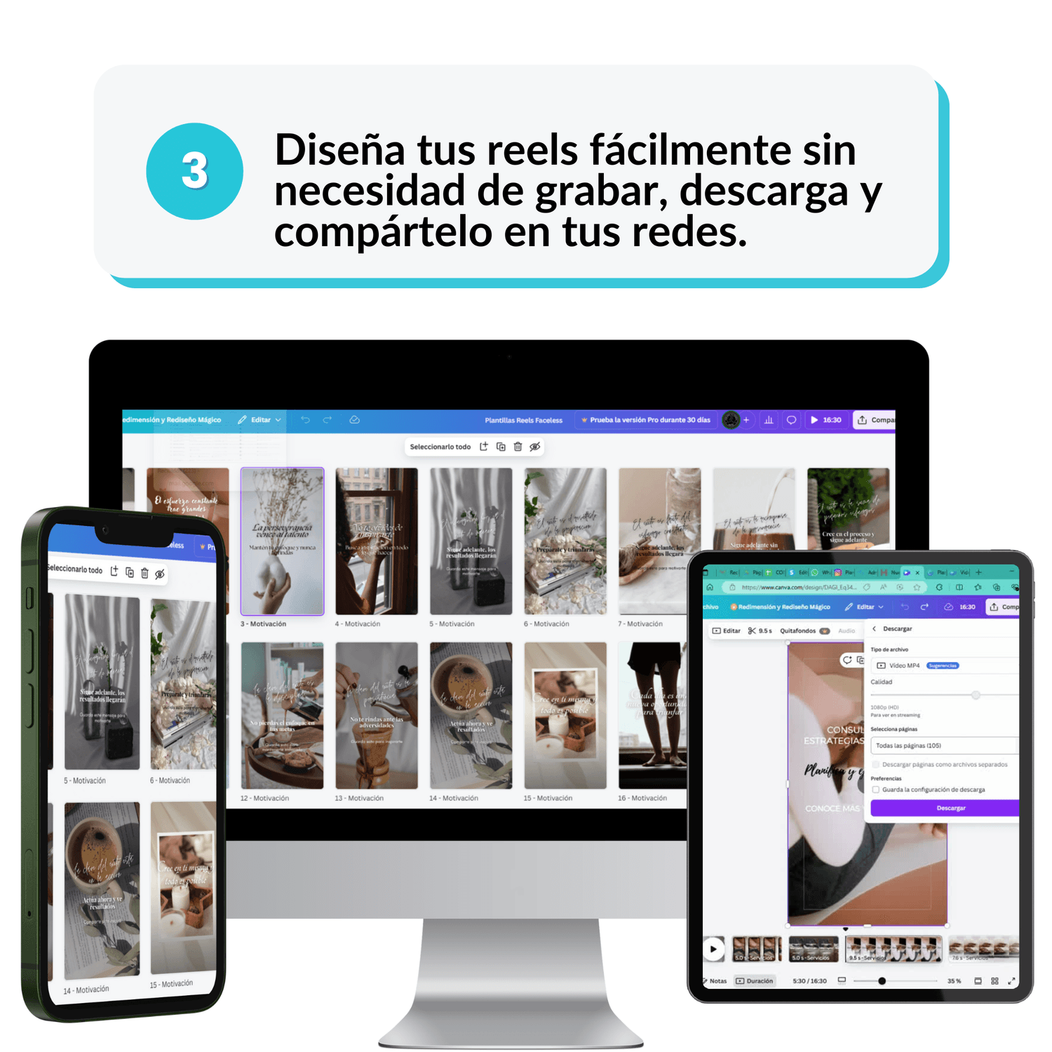Crea reels visualmente atractivos en5 minutoscon nuestras plantillas editables de Canva y NO necesitas la versión Pro.