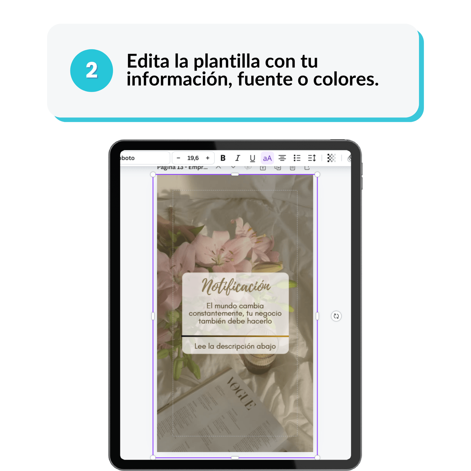 Sí, todas las plantillas son completamente editables para que puedas adaptarlas a tu estilo de marca.